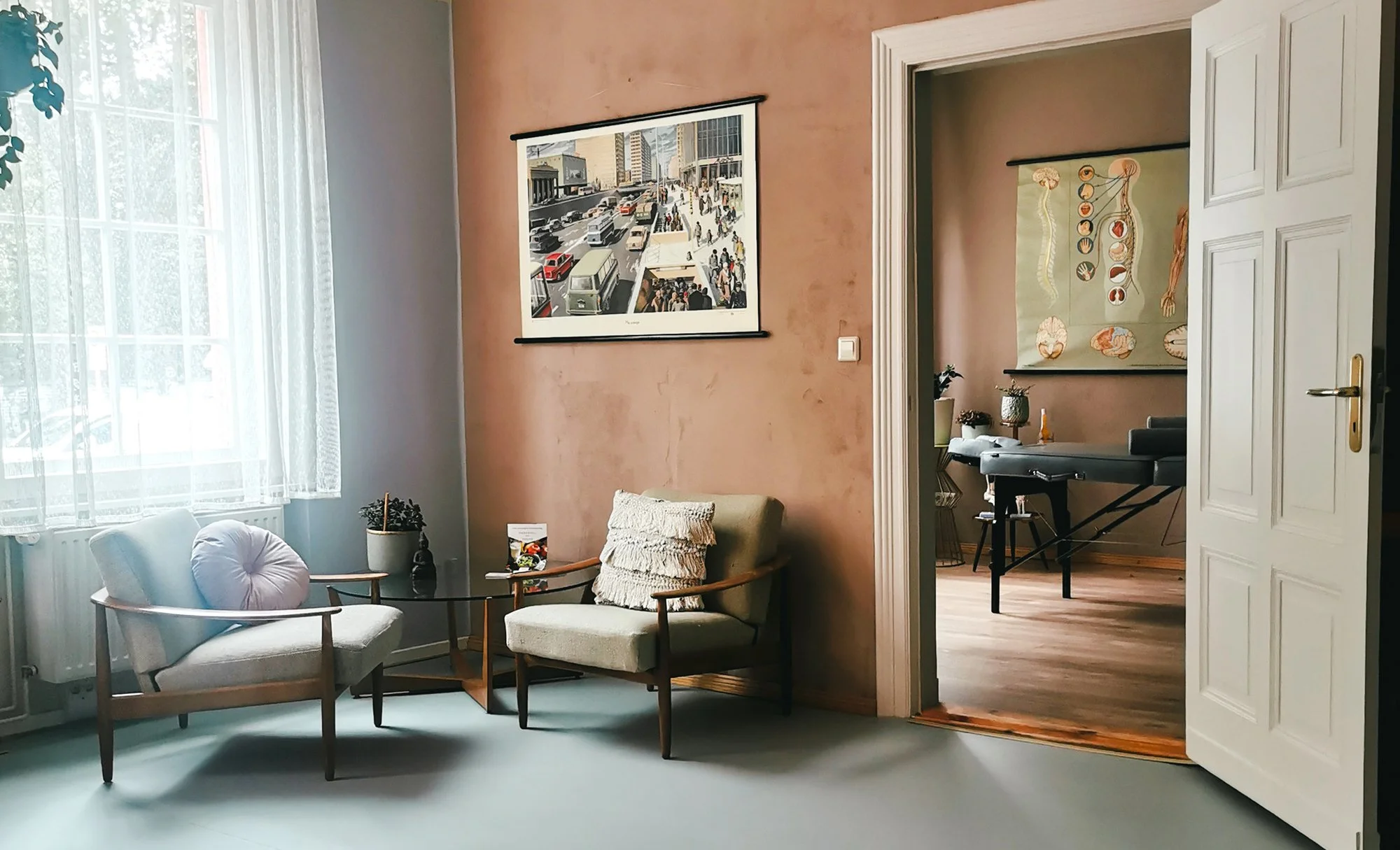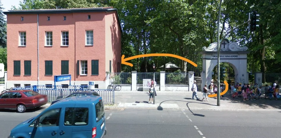 Meine Praxis befindet sich in dem terracottafarbenen Haus direkt am Haupteingang des Friedhofs St. Thomas, gleich vorne links. Bitte nutzen Sie den Haupteingang des Friedhofs – der Zugang zur Praxis befindet sich auf der Rückseite des Gebäudes.